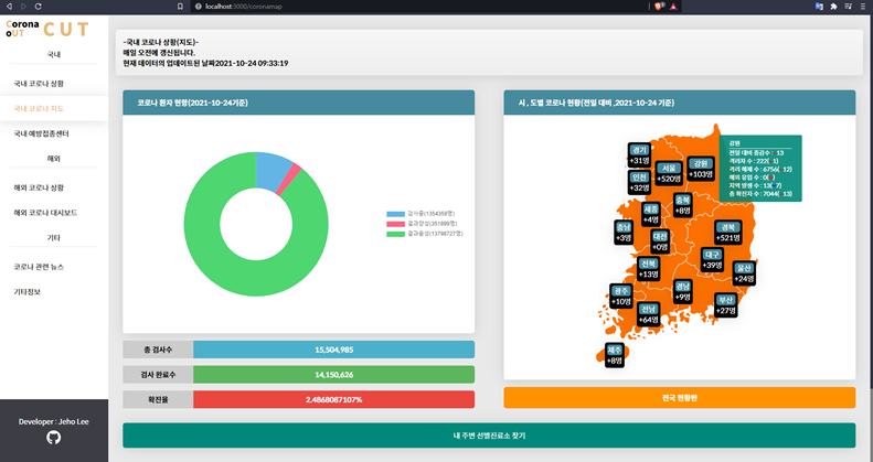 코로나 현황을 알려주는 웹 사이트