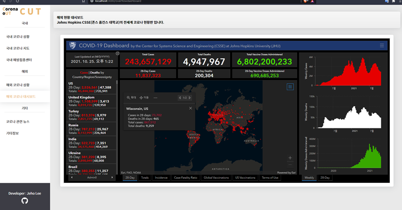 [해외 코로나 현황 화면]