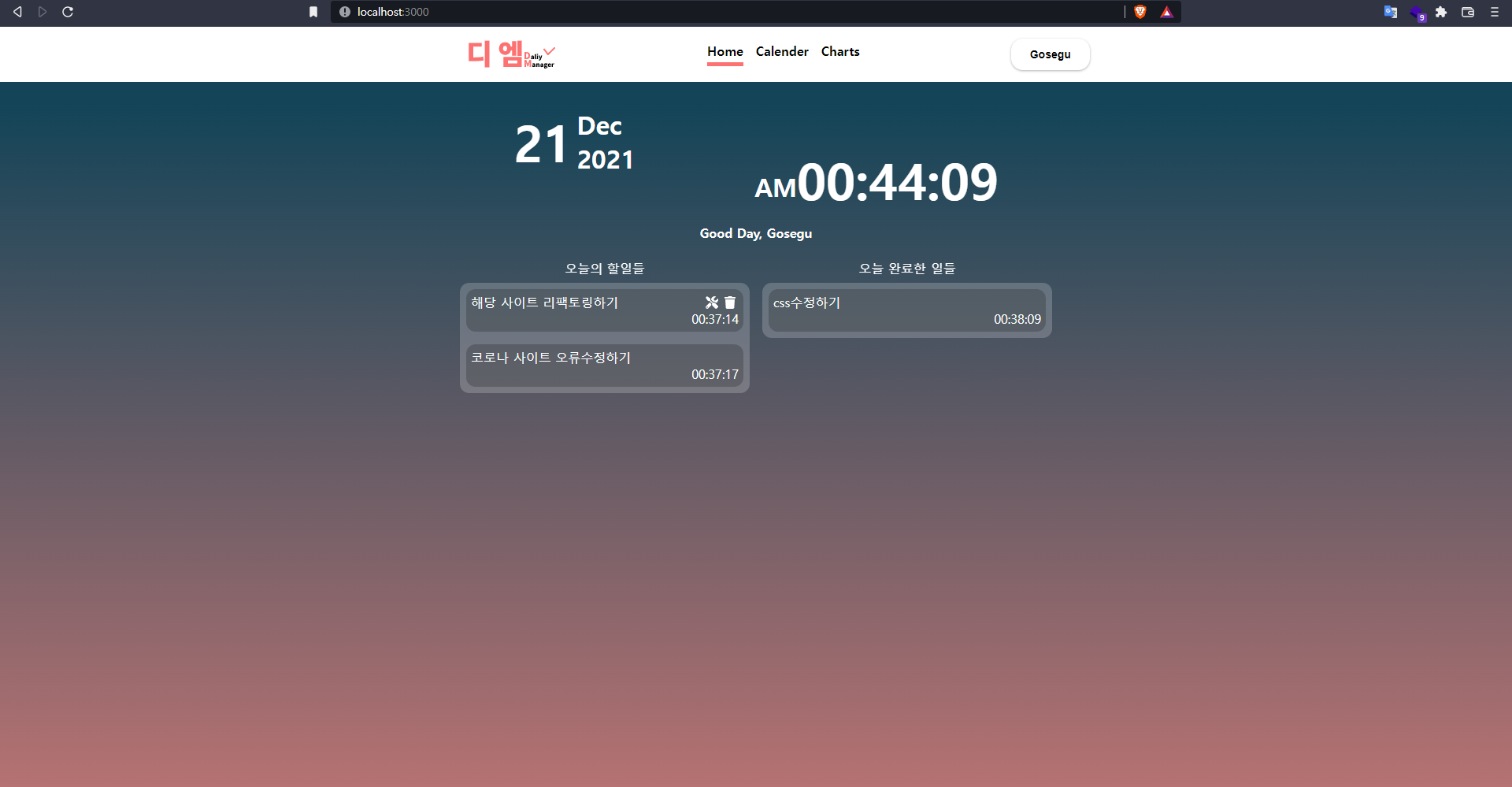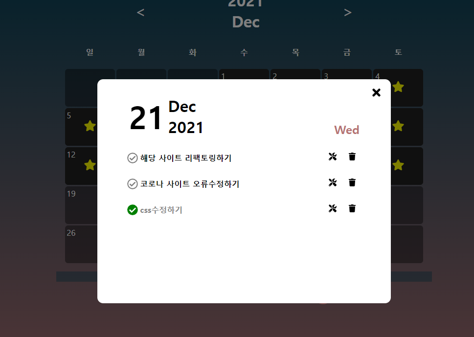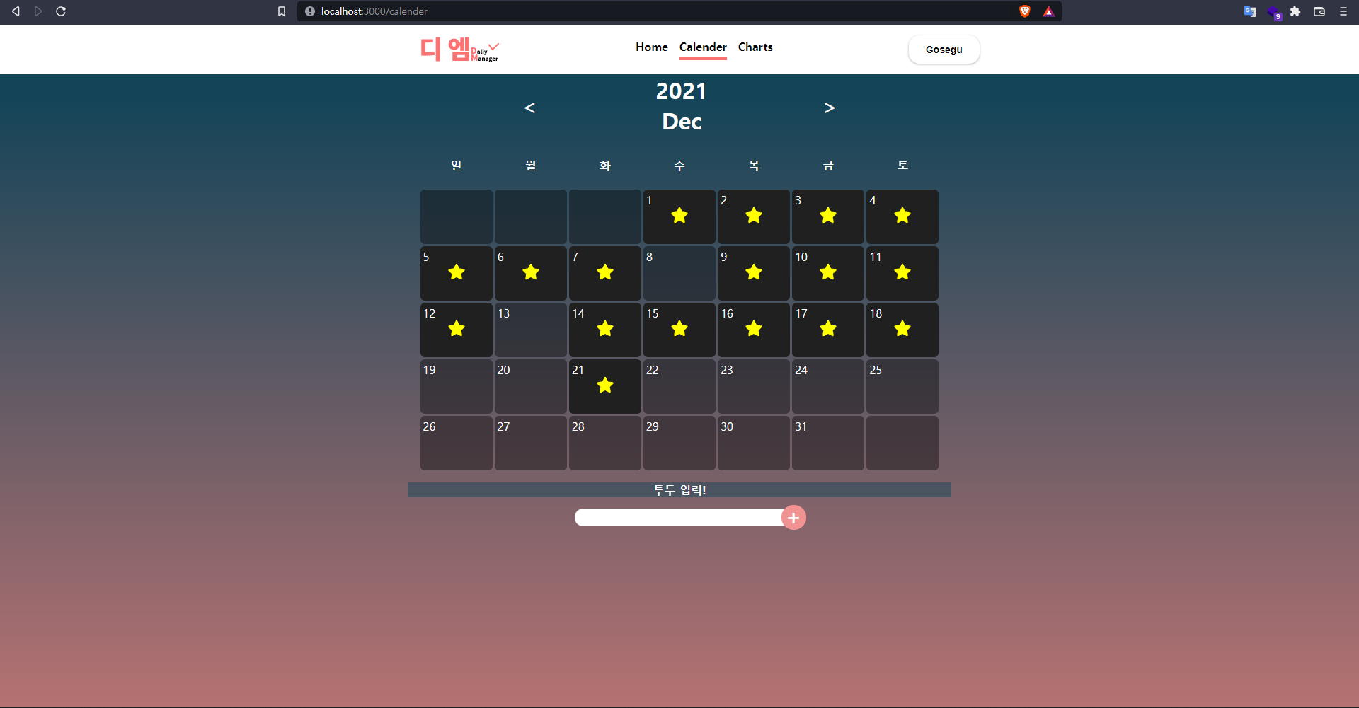 하루의 일을 기록하고 캘린더 형식으로 보여주는 Todo 사이트